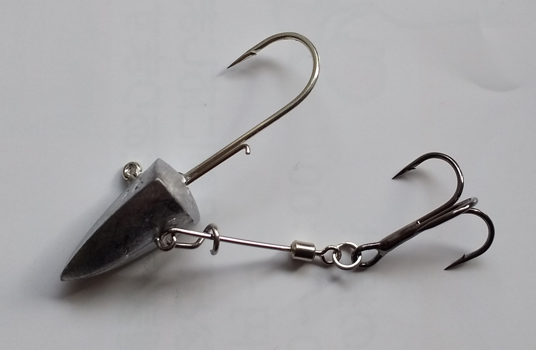 下にアイがあるジグヘッド、トリプルフック、スプリットリングがあればすぐ作れる