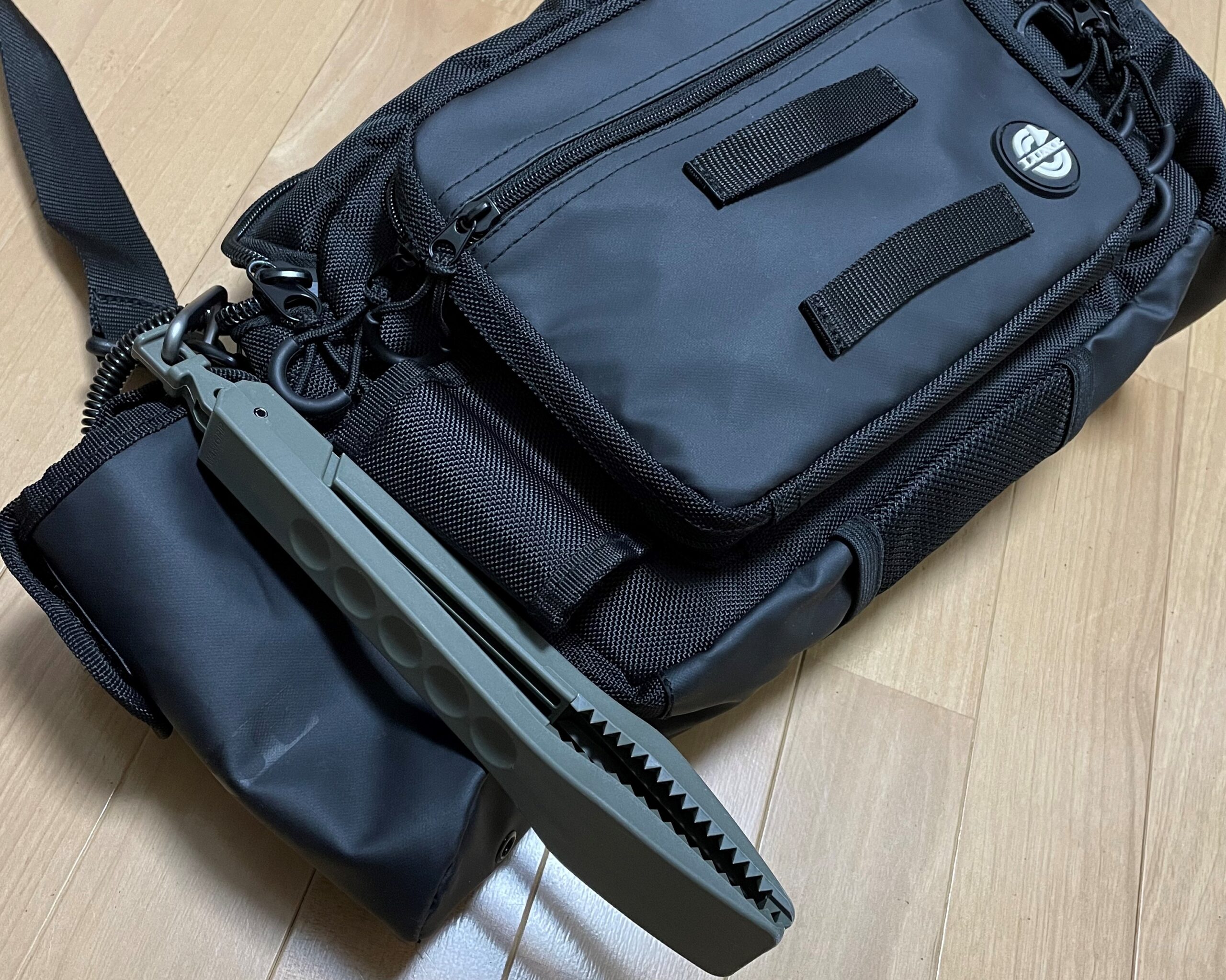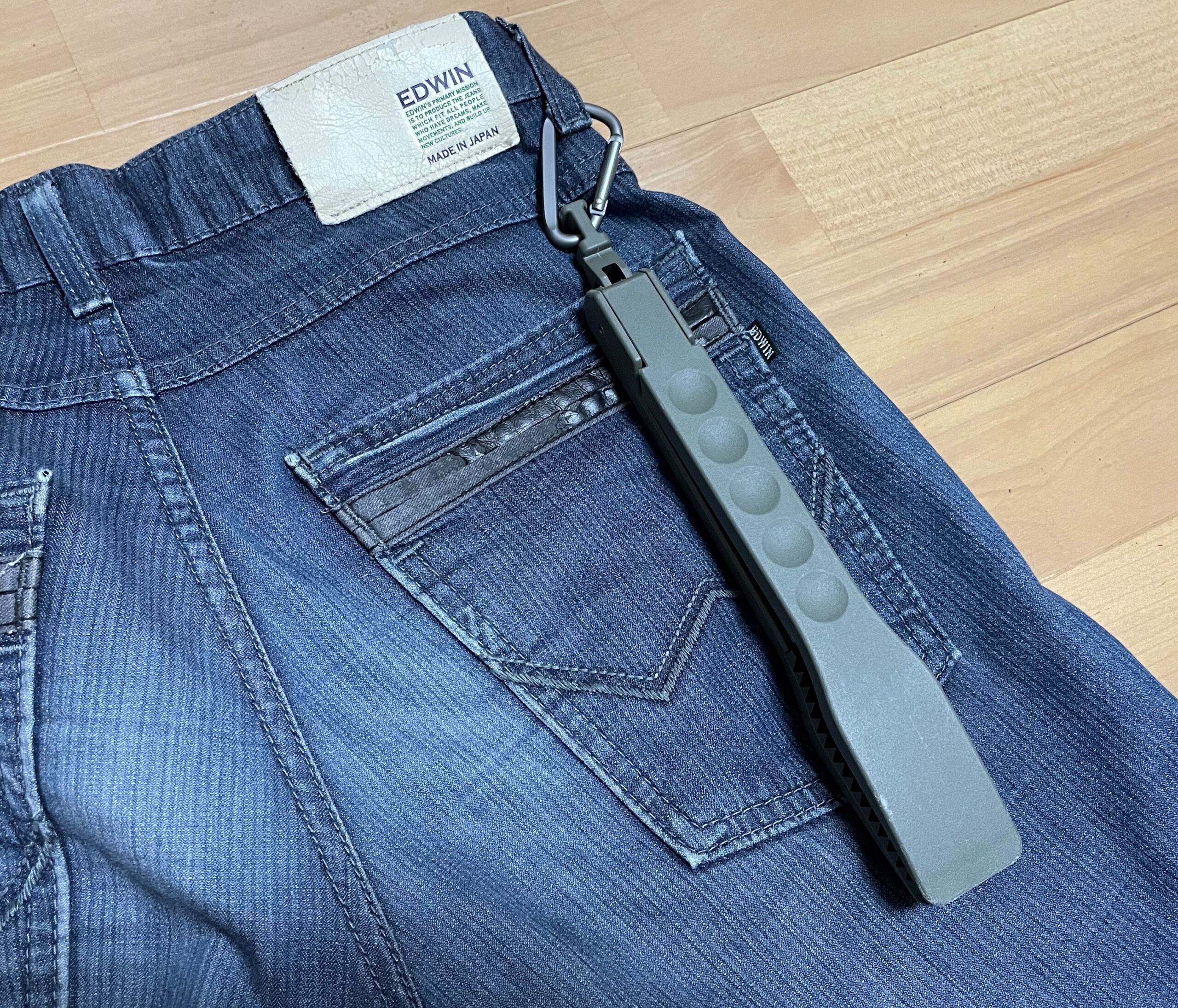 当たり前と言えば当たり前なのですが、カラビナでバッグやズボンのベルト通しに付けることができ、携帯性抜群です。